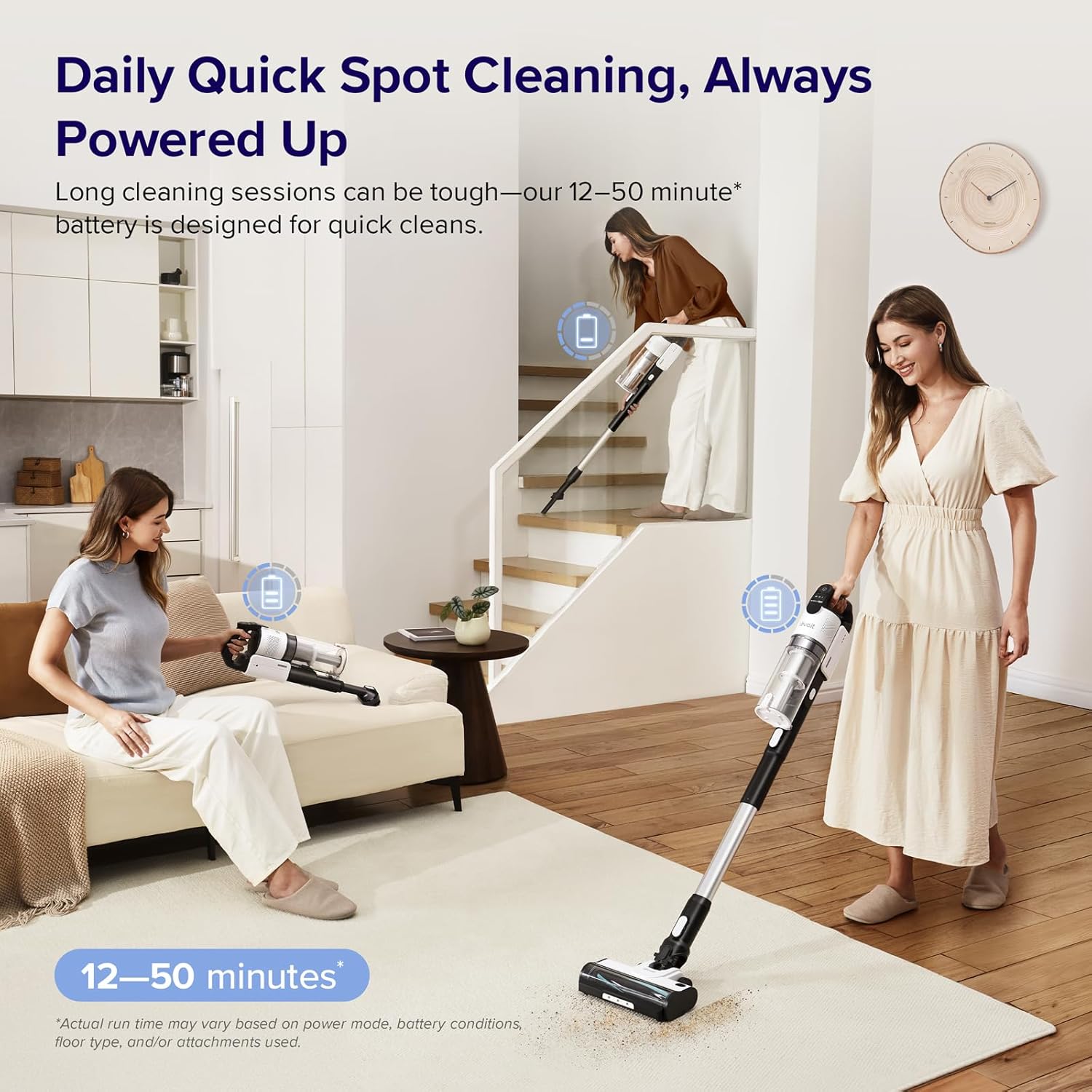 ๐ฅ๐ฒ๐ฎ๐ฑ๐ ๐๐ผ ๐๐ผ ๐ช๐ต๐ฒ๐ป๐ฒ๐๐ฒ๐ฟ ๐ฌ๐ผ๐ ๐๐ฟ๐ฒ: Get up to 50 minutes of power with the Crevice or Pet Tool in Eco mode, 30 minutes with the vacuum head, and 12 minutes in Turbo mode. Note: Runtimes are based on testing at room temperature