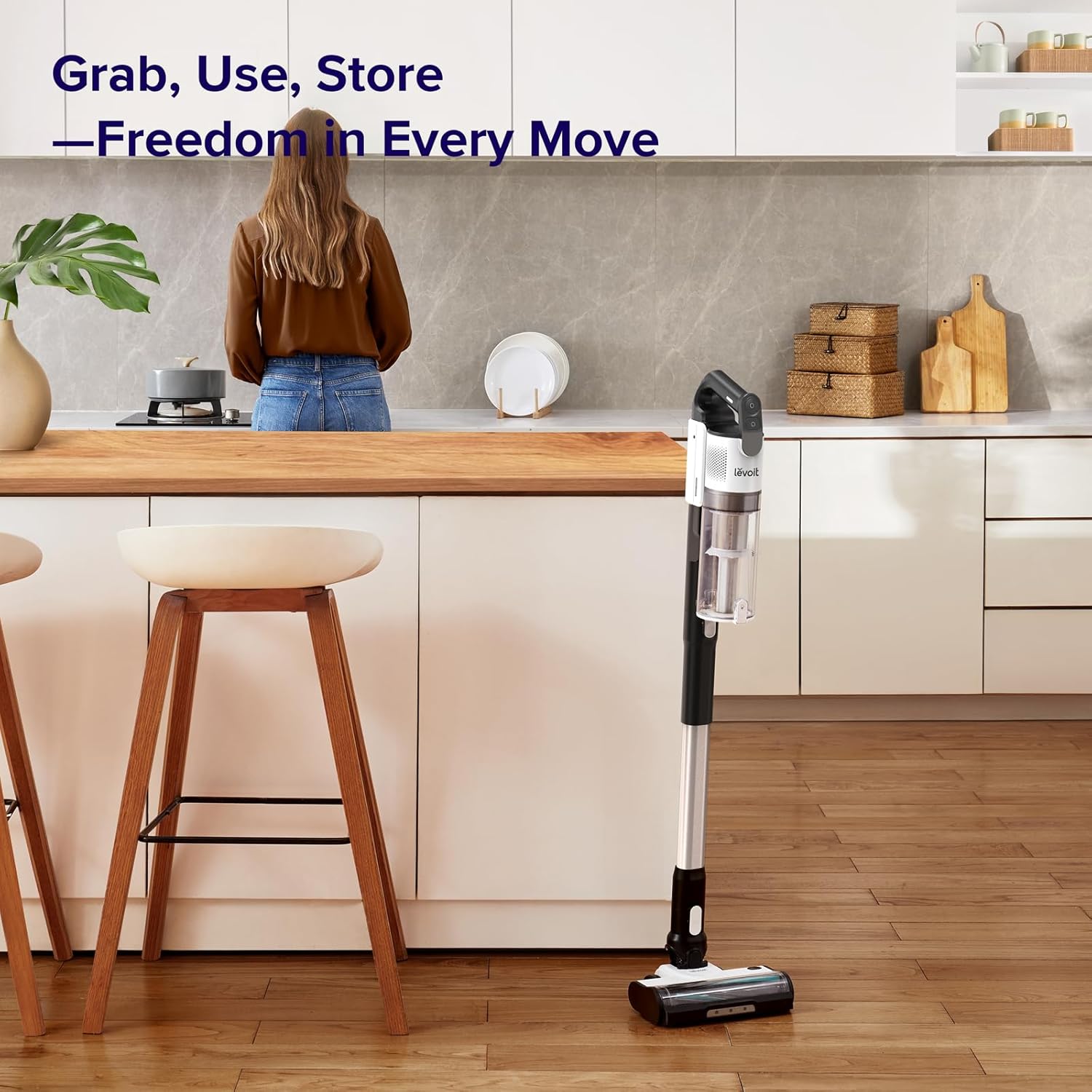 LEVOIT Cordless Vacuum Cleaner, Stick Vac with Tangle-Resistant Design, Up to 50 Minutes, Powerful Suction, Rechargeable, Lightweight, and Versatile for Carpet, Hard Floor, Pet Hair, Black & White