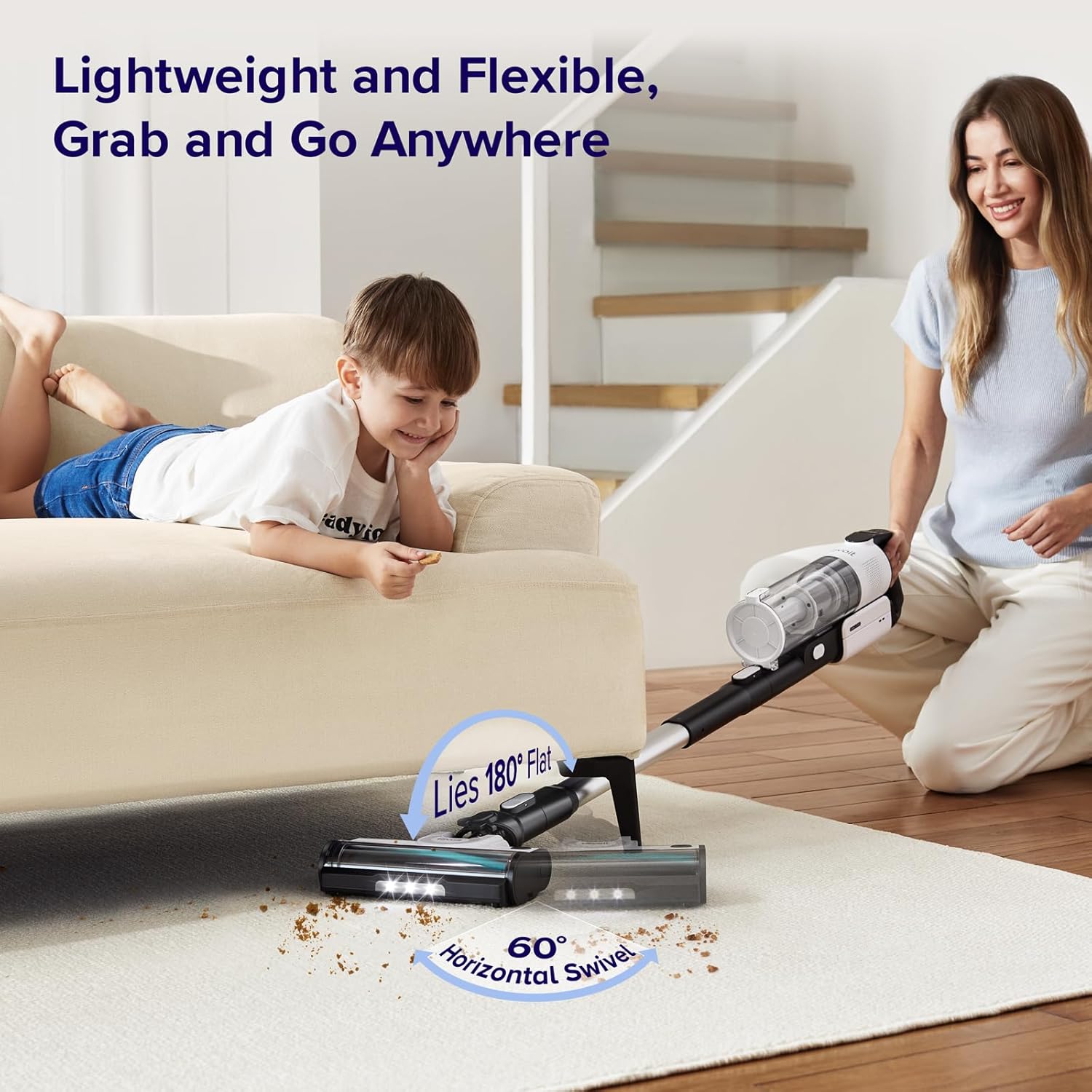 ๐ถ๐ฏ๐น๐ฒ ๐ณ๐ผ๐ฟ ๐๐๐ฒ๐ฟ๐๐ฑ๐ฎ๐ ๐จ๐๐ฒ: Easy top-to-bottom cleaning, lies 180ยฐ flat to reach under furniture, and includes 3 LED lights to spot dust as you go