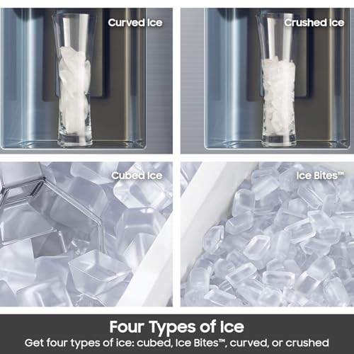 4 TYPES OF ICE: Enjoy your favorite beverage with your choice of ice. Choose from cubed ice or Ice Bites from the Dual Auto Ice Maker in the freezer drawer, or choose from curved or crushed ice from the external dispenser.