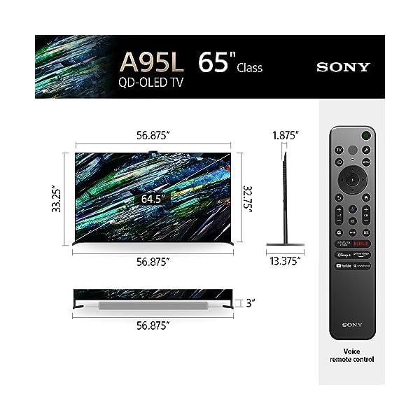 Sony QD-OLED 65 inch BRAVIA XR A95L Series 4K Ultra HD TV: Smart Google TV with Dolby Vision HDR and Exclusive Gaming Features for The PlayStation® 5 XR65A95L- Latest Model,Black