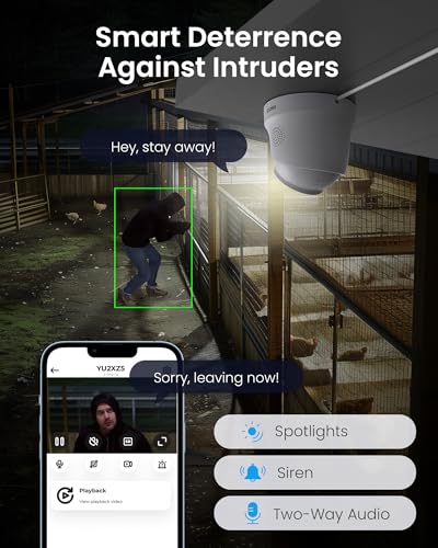 [4K Ultra HD and Color Night Vision] This incredible 4K CMOS image sensor allows the camera to capture more light, resulting in improved color, contrast, and low-light performance. With 4K resolution, you can record everything in stunning detail with high pixel count and digitally zoom in on objects in the distance without losing any quality. Experience the ultimate clarity and enhanced visibility with our advanced technology.